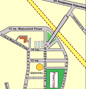 Проезд: От м.Рижская автобусом или маршрутным такси № 19, автобусом 12K до остановки "6-ой Автобусный Парк"